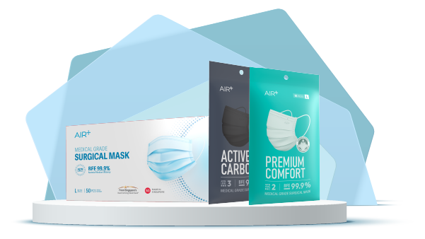 We believe that life starts with breathing healthy air every day. That’s why we are focused on leveraging scientific research and innovative engineering to develop our unique range of protective masks that enable us to breathe safely and empower healthy lives. Today AIR⁺ is home to a range of award-winning masks, including our world’s first certified protective mask with attachable micro fan for exhalation relief, reusable mask and a well-loved range of premium surgical masks for your protective needs.
